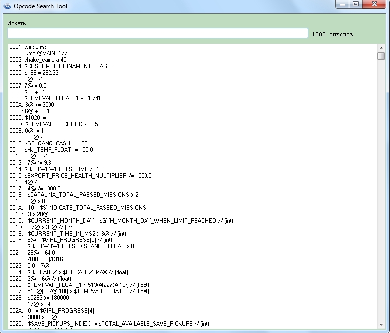 В санни билдере невозможно выполнить данную операцию в таком виде. Для этого нужно воспользоваться опкодом! Пришло время применить фукнцию поиска опкодов! Для этого нажмите CTRL+<kbd>ALT+2`. Должно появится окошко: