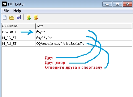 04F7: status_text $TEMP type 1 line 1 GXT 'HEALACT'Вот что в нас получилось: