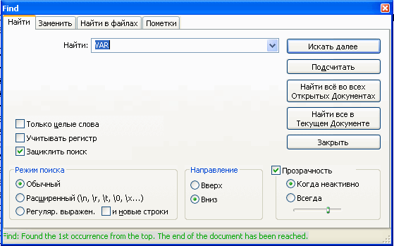 Нам нужно найти VAR. Открываем поиск ( нажимаем Ctrl+<kbd>F ).