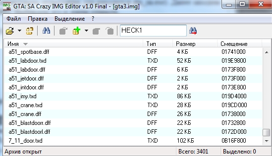 Руководство по использованию программы GTA-SA Crazy IMG Editor