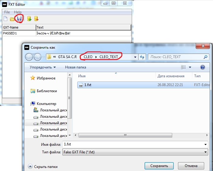 Что бы сохранить наш файл, нужно нажать, как вы уже, думаю, догадались, дискетку. Назовём файл "1.fxt" (имя не имеет значения);