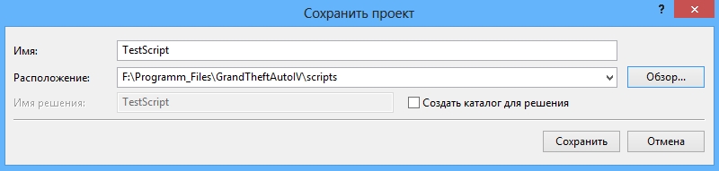 Снимаем "птичку" с чекбокса "Создать каталог для решения", так как мы не планируем делать ничего сложного и функционального для нашего проекта. Нажимаем Сохранить. Теперь наш проект будет в безопасности. :)