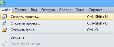 Открываем Visual Studio и переходим во вкладку Файл->Создать проект: