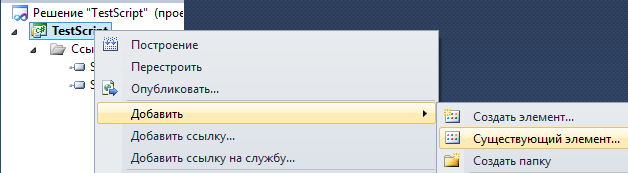 ПКМна названии проекта и выбратьДобавить->Существующий элемент...:
