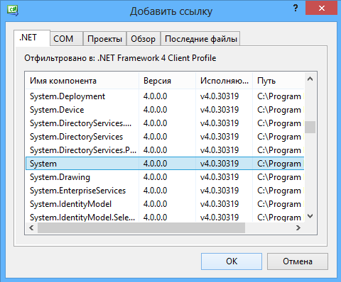 Также нам необходима ещё одна ссылка. Используя метод выше, добавим ссылку "System". Она уже вложена в каталог, поэтому искать её нужно во вкладке ".NET":